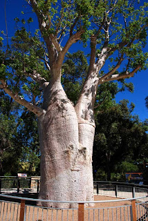 Gija Jumulu, this 750 year old boab tree, journeyed 3200 km in the winter of 2008, from Warmun, in the Kimberley region, to the Kings Botanical Garden in Perth. The tree was a gift from the traditional owners, the Gija people, to all Western Australians (Jumulu means boab in the Gija language). The tree needed to be moved due to roadworks on the "Great Northern Highway." It's a beautiful tree; boabs are valued by the indigenous people for their edible fruit, medicinal value, and water holding capacity. Nothing stands in the way of progress; at least someone recognized the value of this iconic tree and supported it's continued life...